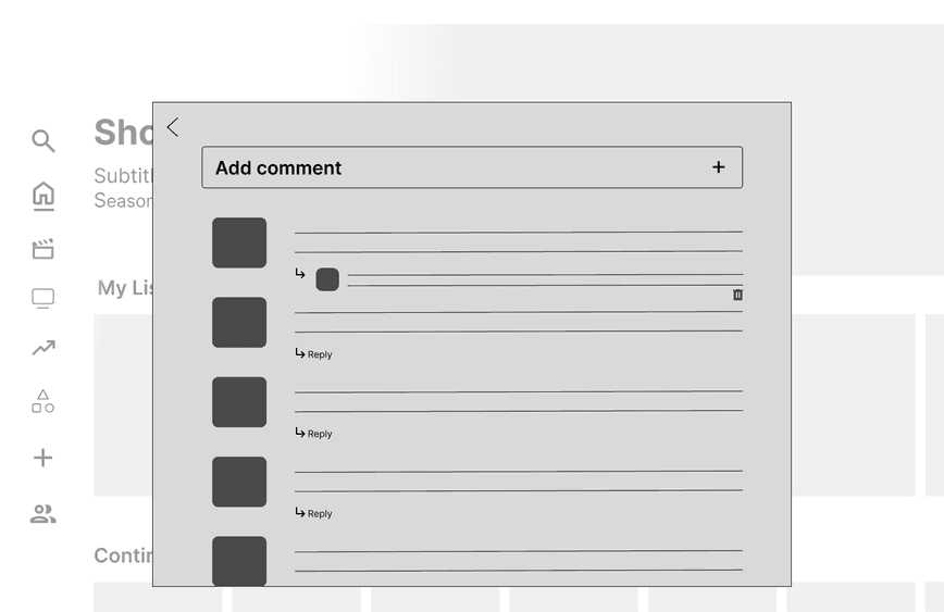 Our design should implement features for each show/movie where users can view comments from friends, and recommend the show/movie to other users
